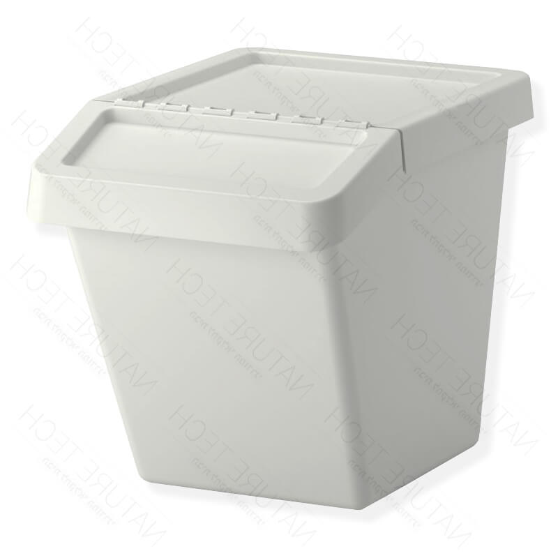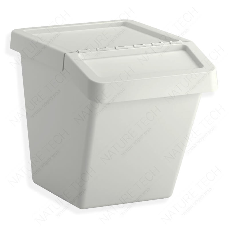 מאגר מים לבן בנפח 60 ליטר עם מכסה בעל פתח גישה רוחבי המאפשר תחזוקה שוטפת נוחה בתפעול מאגר המערכת ההידרופונית.
