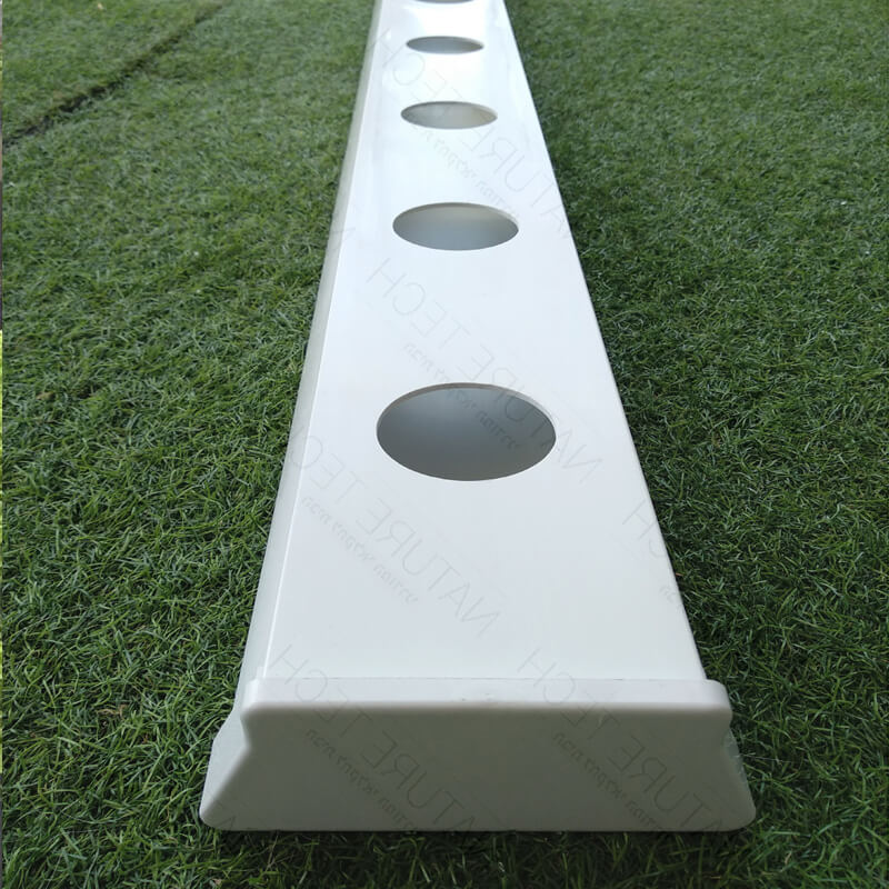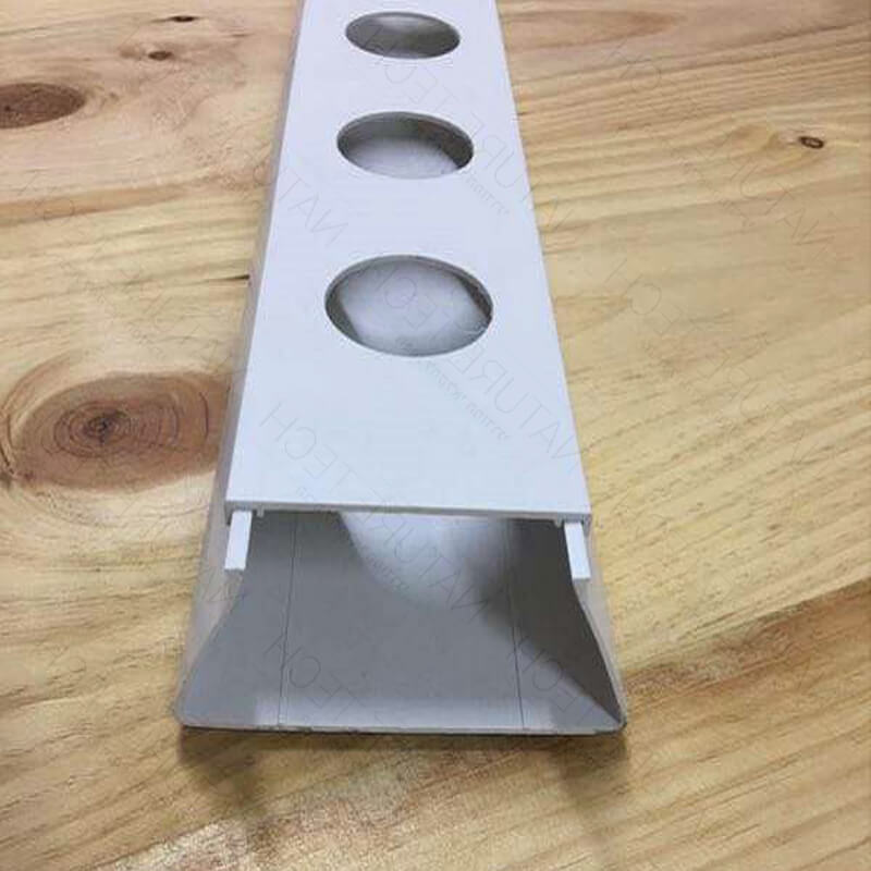 צינור PVC לבן טרפזי עם מכסה נשלף לגידול בשיטת NFT/ מעולה להנחה על משטחים ישרים, קל לניקוי, קל לתפעול. חורי השתילה במרחק של 12 ס”מ אחד מהשני, ומתאימים לכוס שתילה בקוטר של 2″.