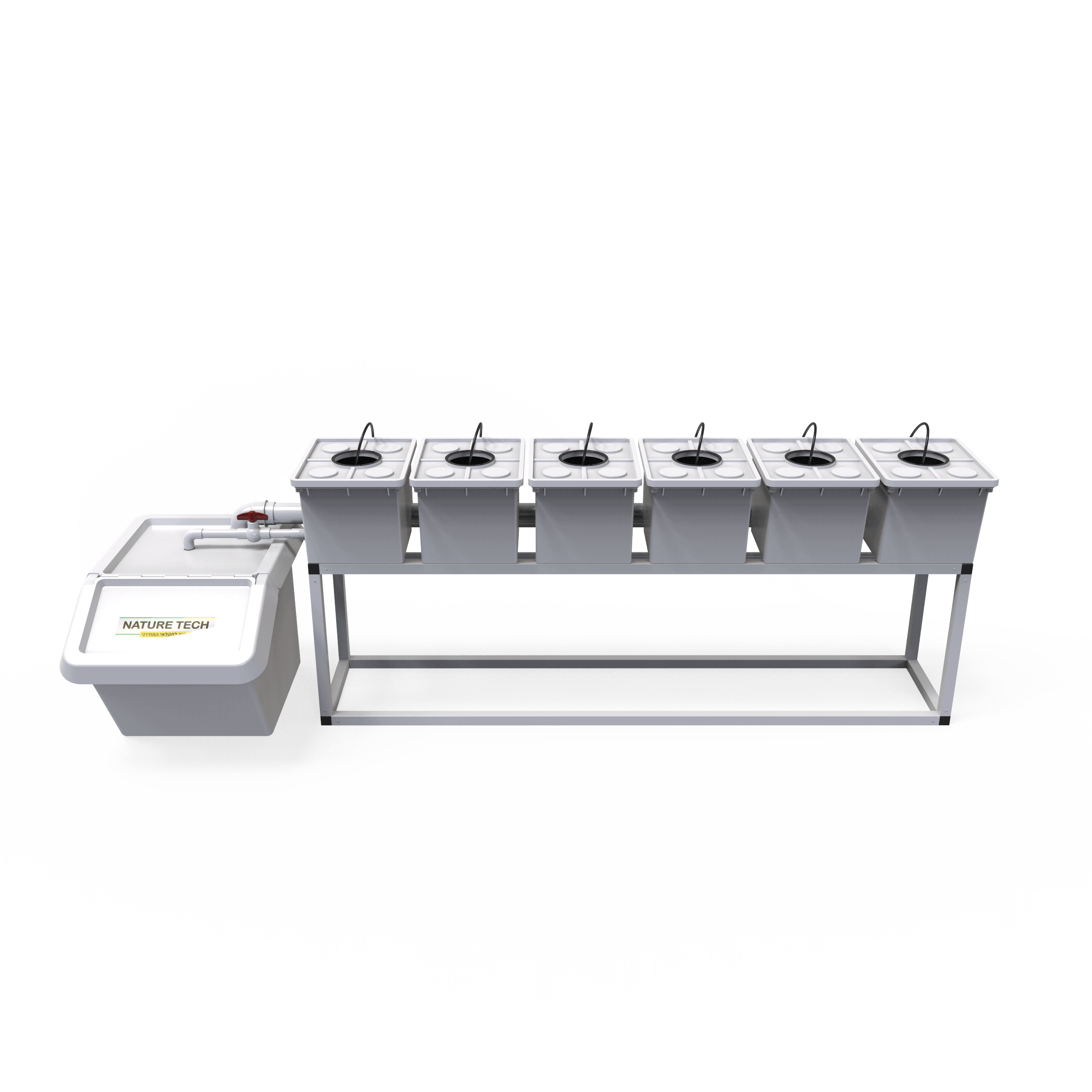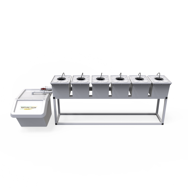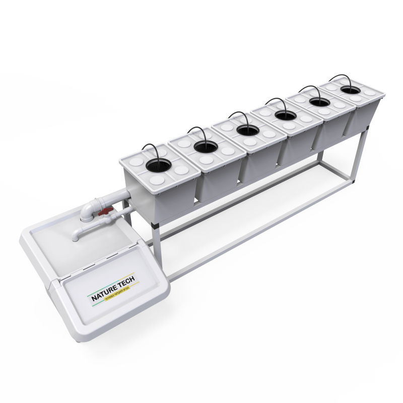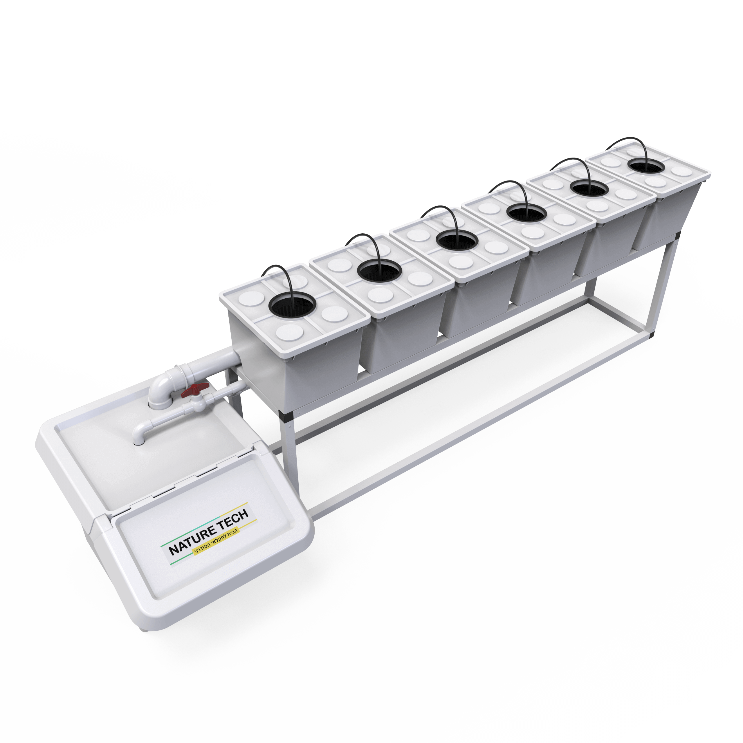 הצמחים שתולים במצע גידול אינרטי (קוקוס / פרלייט / הידרוטון) או ללא מצע כלל. שארית התמיסה נאגרת בתחתית הדלי עד לגובה סיפון הניקוז, שמעביר את השאריות באמצעות תשתית הניקוז חזרה למאגרי המים.