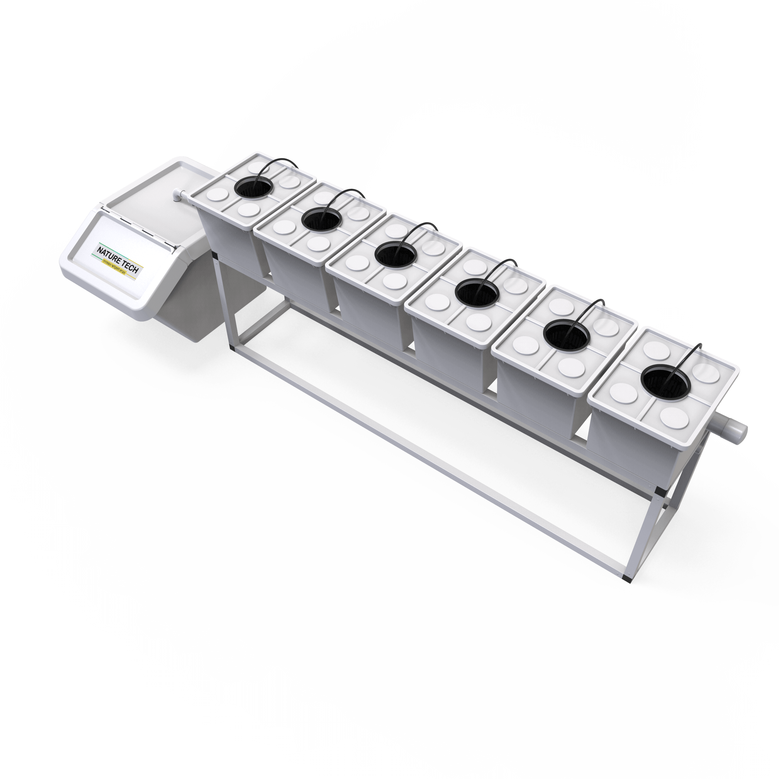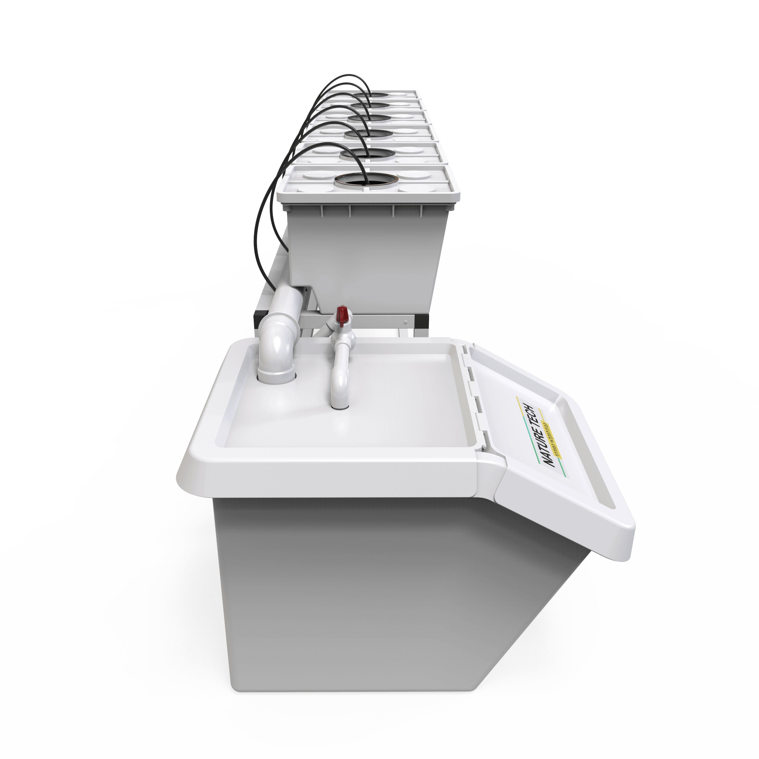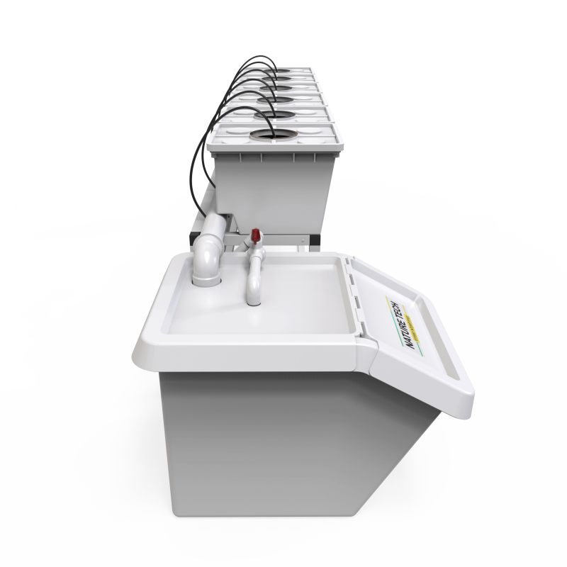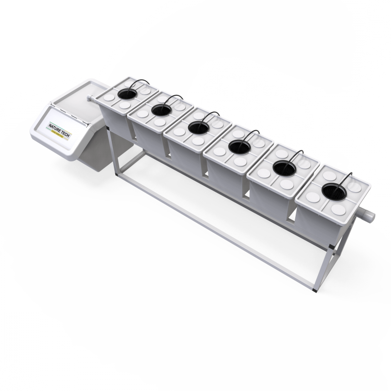 הצמחים שתולים במצע גידול אינרטי (קוקוס / פרלייט / הידרוטון) או ללא מצע כלל. שארית התמיסה נאגרת בתחתית הדלי עד לגובה סיפון הניקוז, שמעביר את השאריות באמצעות תשתית הניקוז חזרה למאגרי המים.