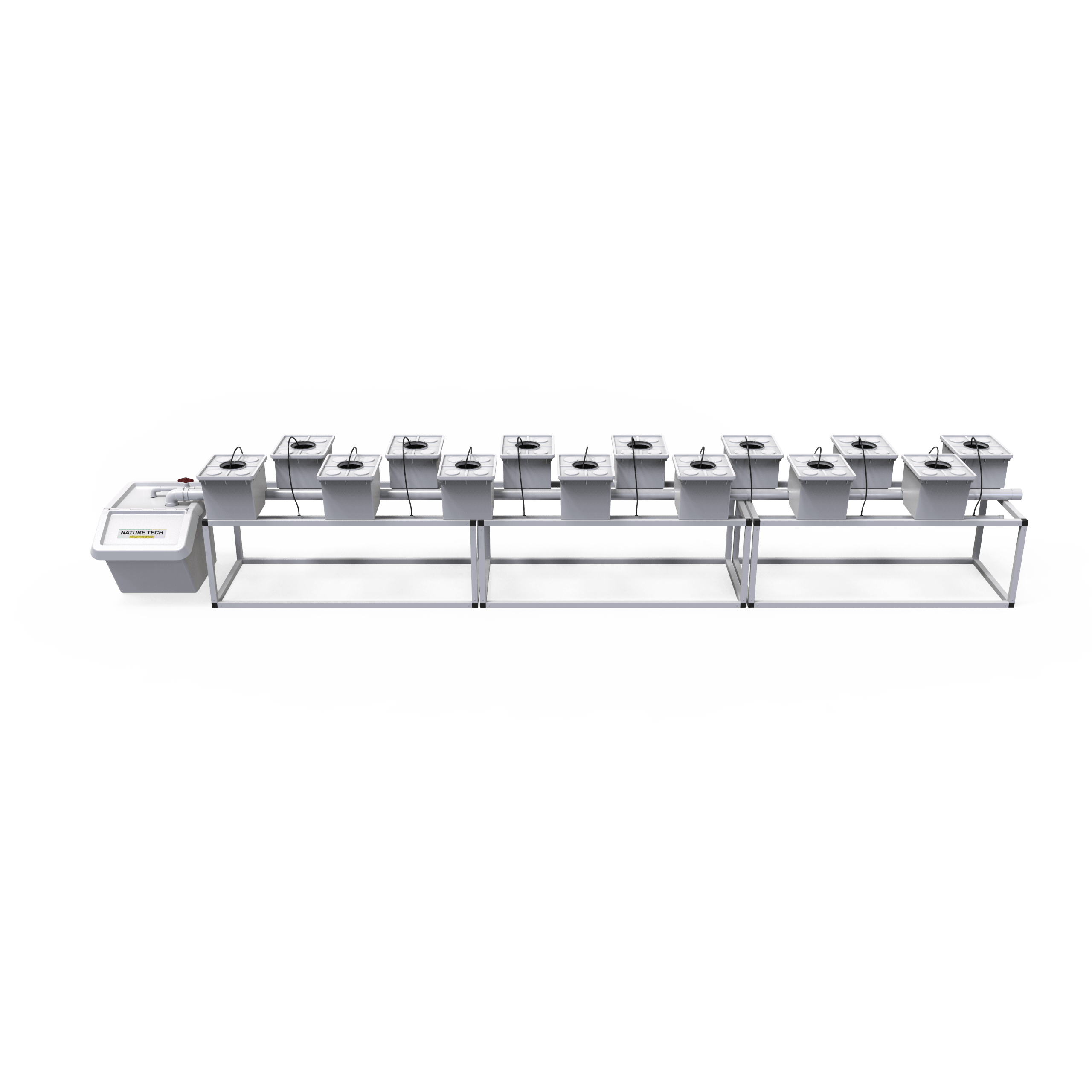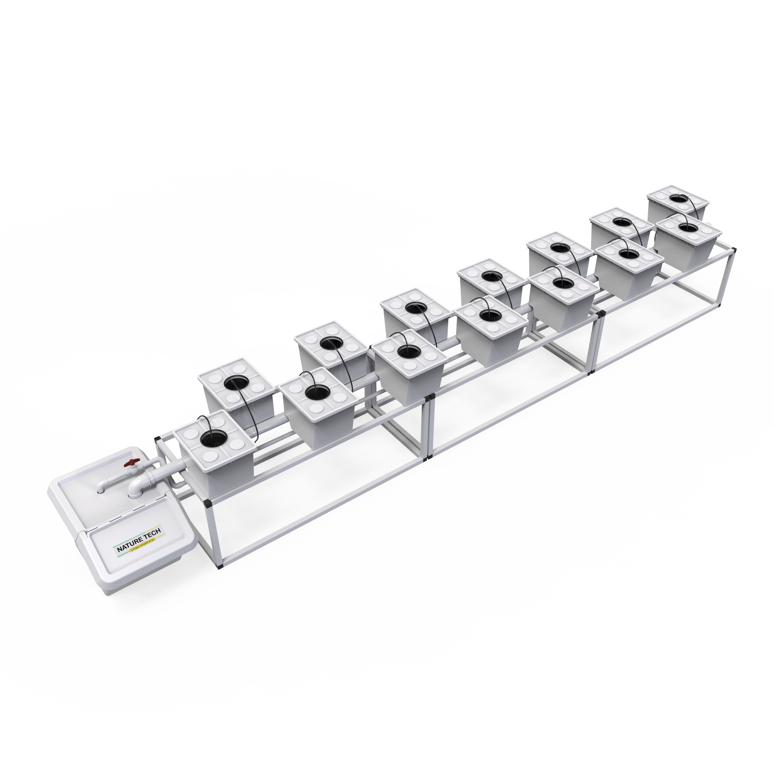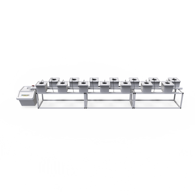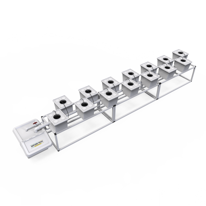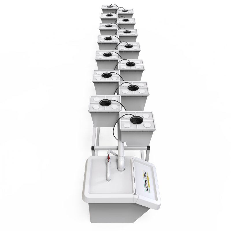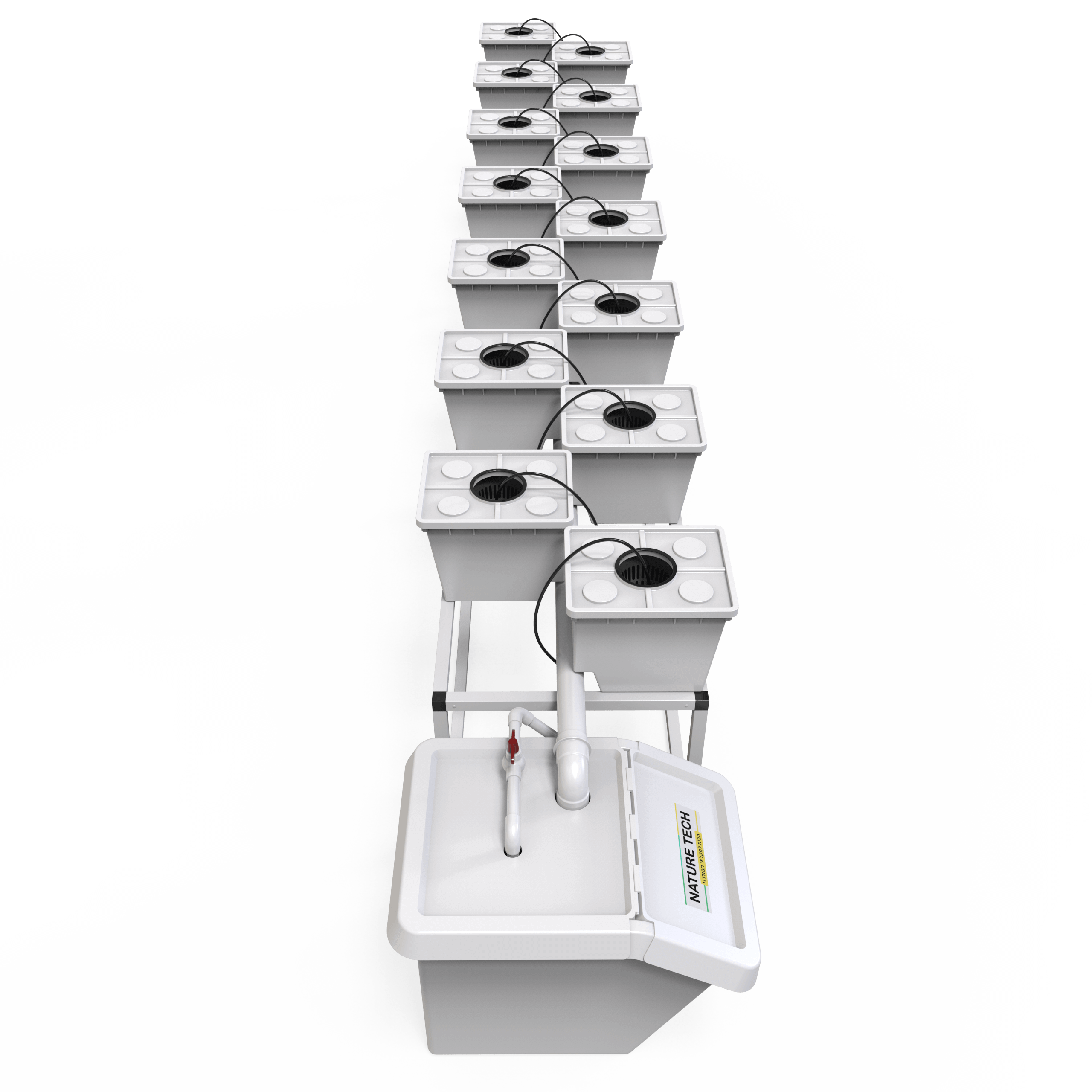 הצמחים שתולים במצע גידול אינרטי (קוקוס / פרלייט / הידרוטון) או ללא מצע כלל. שארית התמיסה נאגרת בתחתית הדלי עד לגובה סיפון הניקוז, שמעביר את השאריות באמצעות תשתית הניקוז חזרה למאגרי המים.