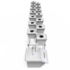 מערכת הידרופונית בשיטת הדליים ההולנדים לגידול ירקות פירותיים הדורשים מקום רב לשורשים ולנוף הצמחים, מאפשרת גידול עמיד במיוחד לקיץ הישראלי.