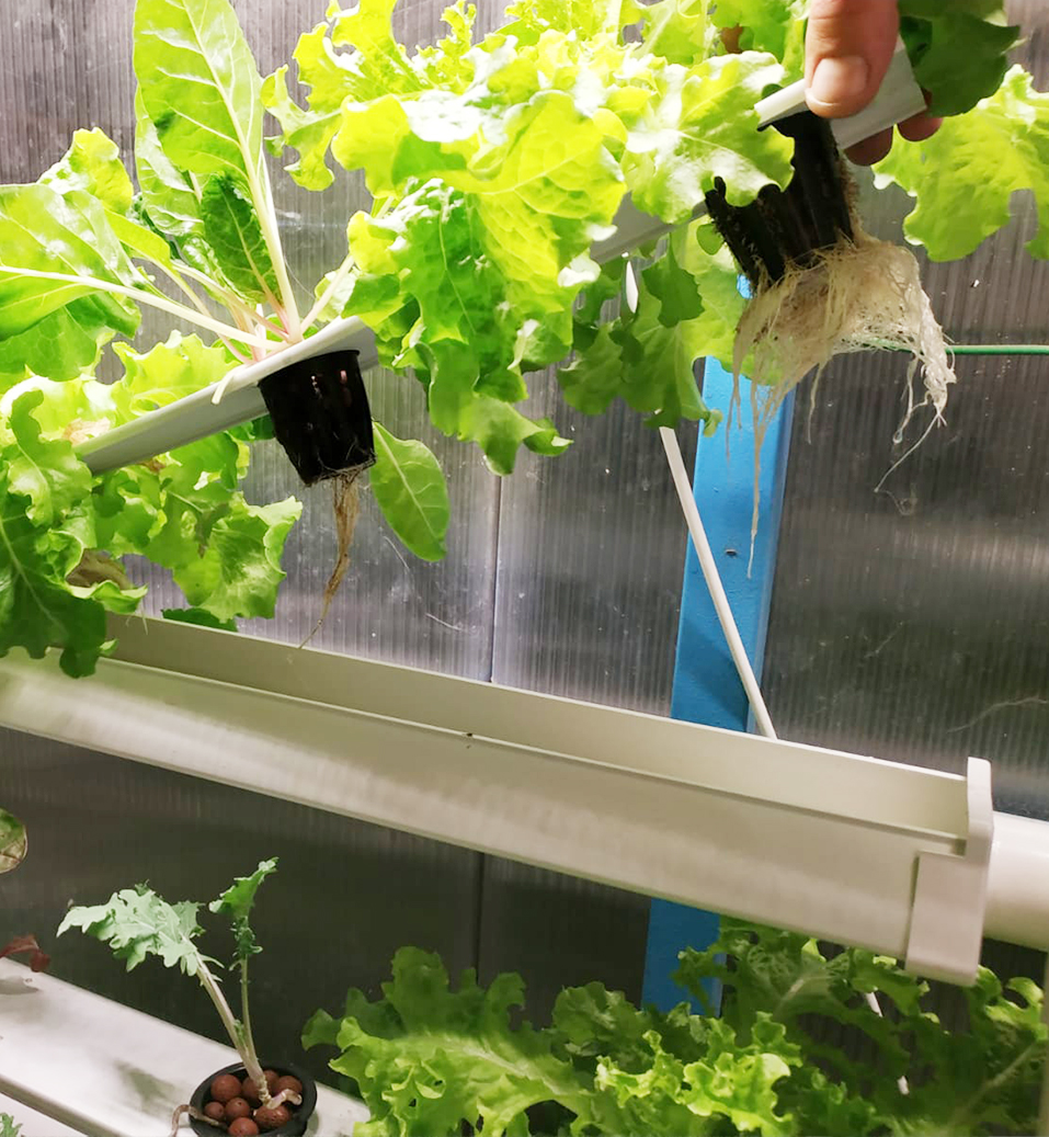 מערכת הידרופונית קומפקטית לגידול 14 צמחים במרפסת הבית בשיטה הפופולארית NFT (Nutrient film technique).בשיטת גידול זו נדחפים מים ודשן במחזוריות ממאגר מים לתוך תעלות הגידול, כאשר שורשי הצמחים שיושבים בתעלות נוגעים במים ומקבלים את כל ההזנה לה הם זקוקים. שארית תמיסת ההזנה חוזרת למאגר וכך, באופן מחזורי ומתחדש, המערכת מאפשרת חסכון אדיר של מים ודשן.