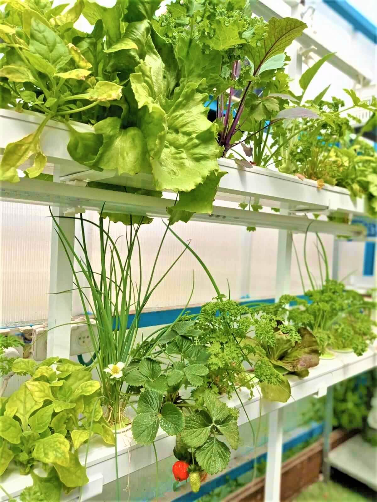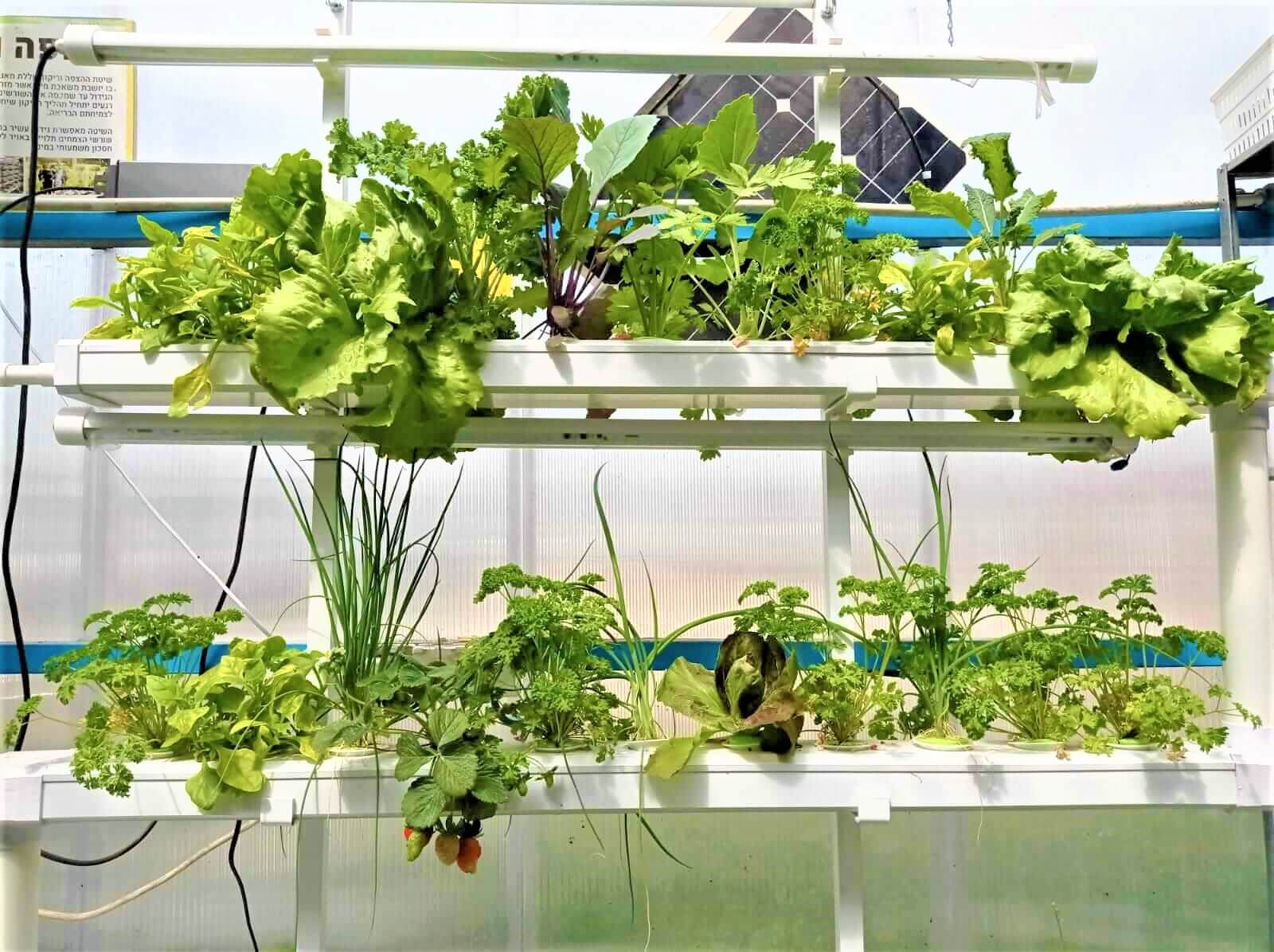 מלפפונים, חצילים, פלפלים, אבטיחים, מלונים, קולורבי, ברוקולי, כרובית, תותים, קישואים, זוקיני, גמבה, כרוב, כוסברה, פטרוזיליה, שמיר, סלרי, תרד, מנגולד, חסה סלנובה, חסה ערבית, חסה עגולה, חסה אנדיב, חסה מסולסלת, עירית, בצל ירוק, רוקט, מימוזה, גרגר הנחלים, תותים, קולורבי, במיה, טימין ושאר תבלינים וירקות עליים.
