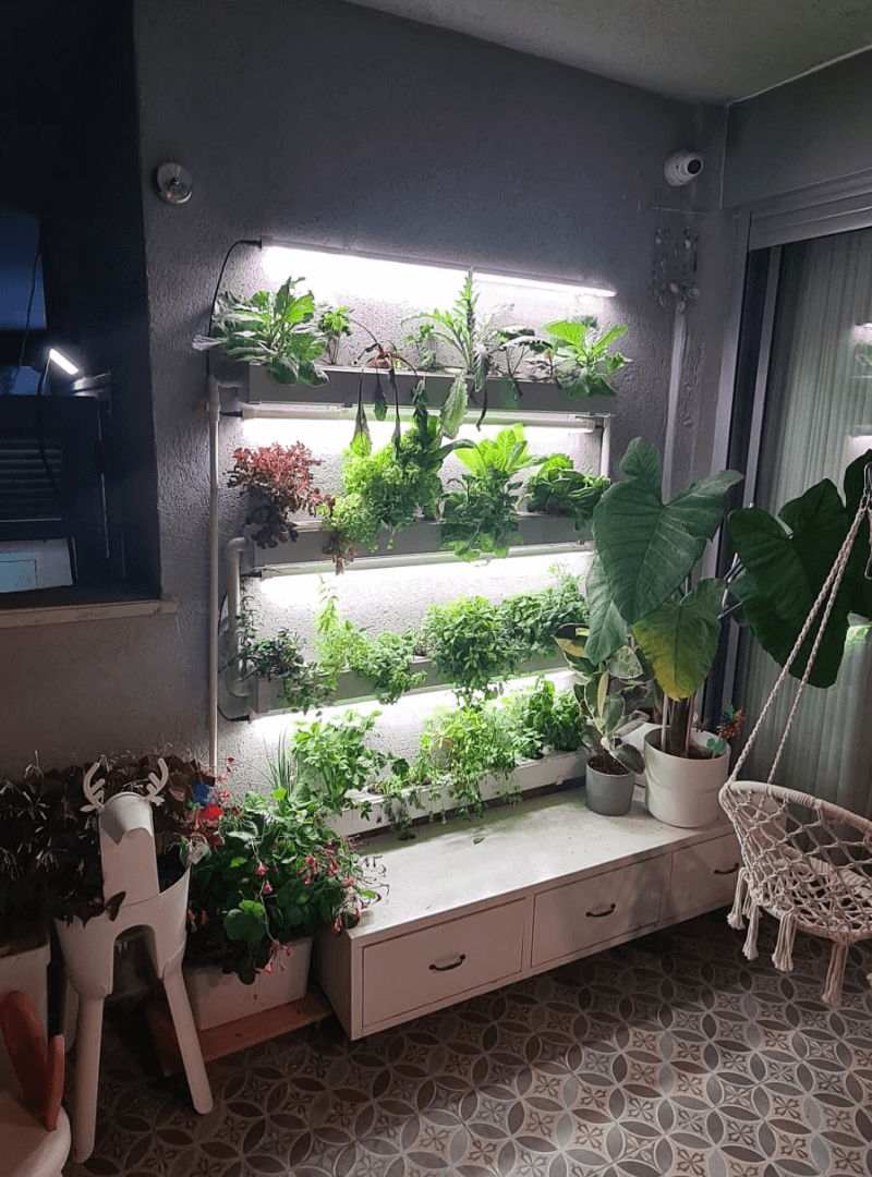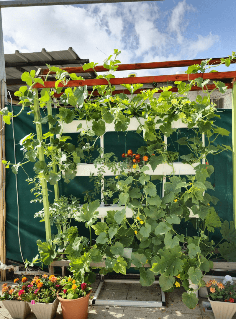 מערכת הידרופונית אנכית לגידול 32 פירות, ירקות ותבלינים.