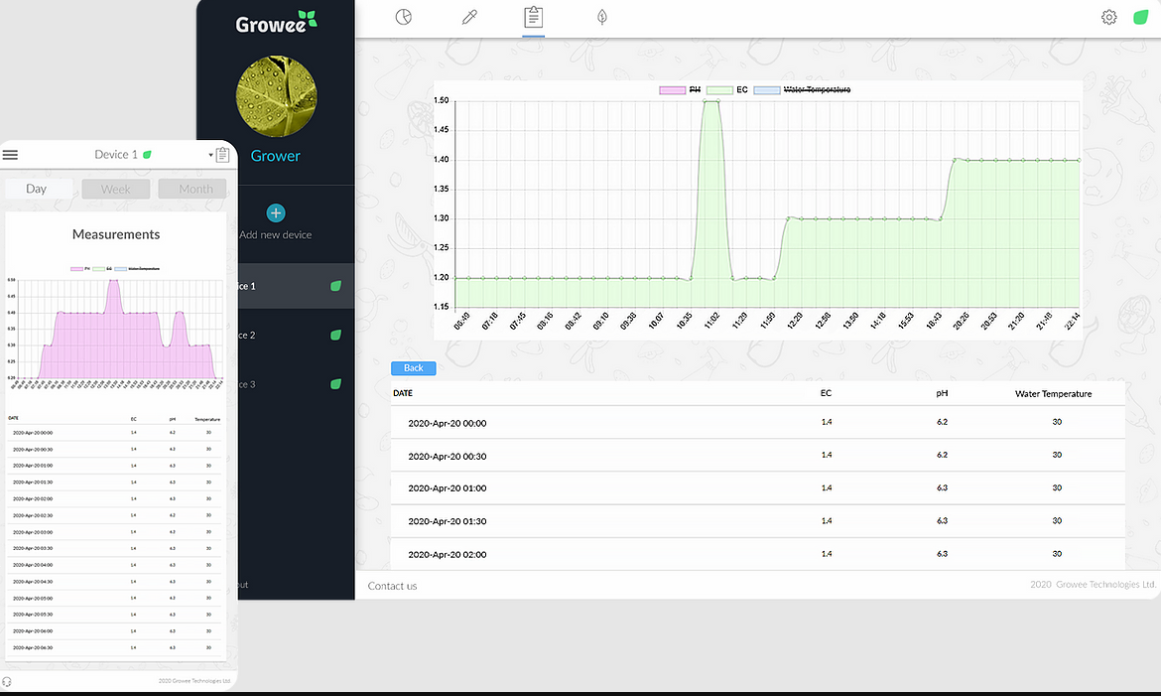 מעקב בזמן אמת אחר רמת ה-pH ,רמת ה-EC וטמפרטורת התמיסה מכל מקום בעולם. זיהוי בעיות בזמן אמת, שיפור תוצאות הגידול, הפיכת תהליך הגידול לפשוט וידידותי והנגשת נתונים מכל מקום ובכל זמן דרך אפליקציה ידידותית.