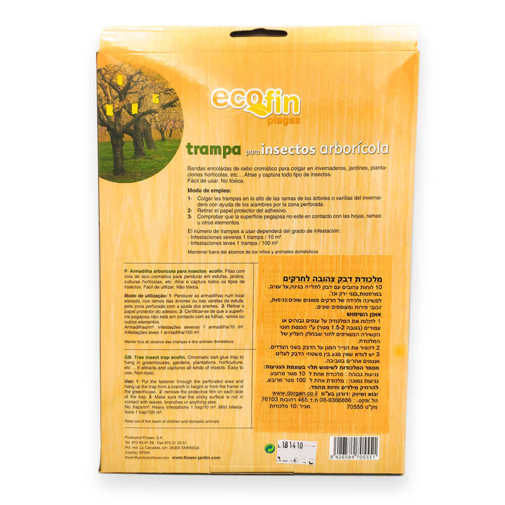 מלכודת כרומוטרופית אשר הודות לצבעה הצהוב, מושכת חרקים מזיקים שפוגעים בצמחיית הגן, בעצי פרי, בצמחי נוי, בערוגות הפרחים וצמחי מאכל ועוד. המדבקות הצהובות מתאימות במיוחד כנגד כנימות, זבובי פירות, אקרית הקורים ועוד מגוון חיפושיות ומזיקים. המזיקים נמשכים אל הצבע הצהוב של המדבקה שמדמה פריחה אביבית ונדבקים בדבק החזק שעל גביה – משני צידיה.