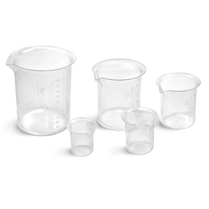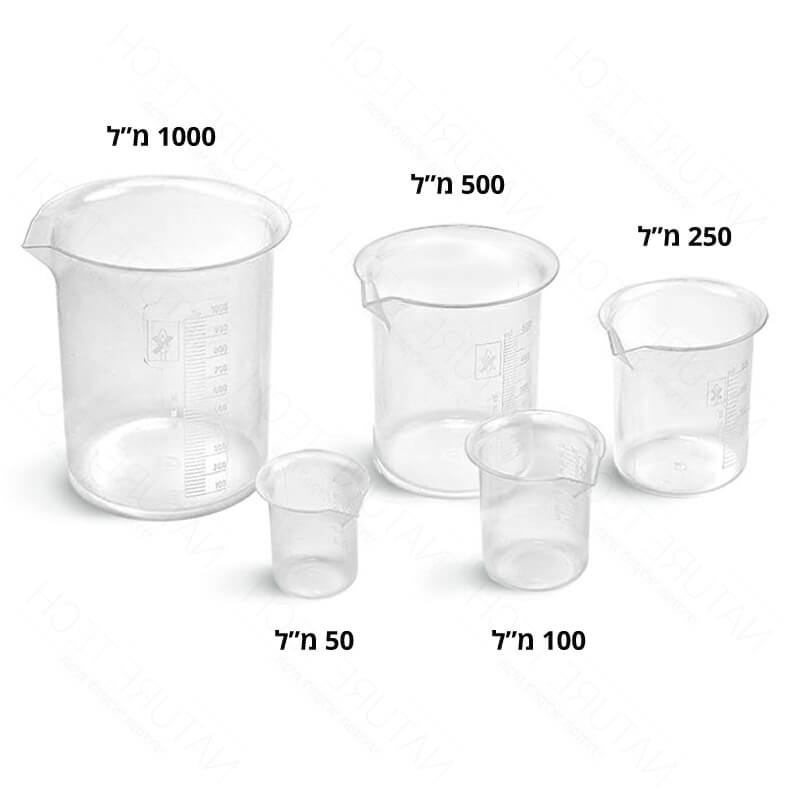כוסות מדידה עשויות פוליפרופילן (PP) במגוון נפחים, בעלות סרגל סימון במיליליטרים.